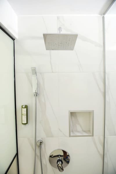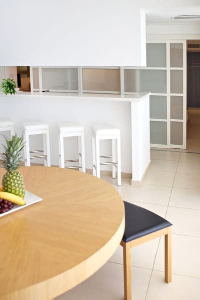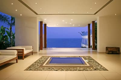Dominée de blanc, elle est résolument design. Le mélange de bois, de verre et de métal rend l’ensemble exotique et élégant. Elle laisse pénétrer la lumière naturelle pour une pièce lumineuse. Des couleurs neutres rendent le cadre merveilleux.