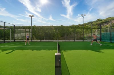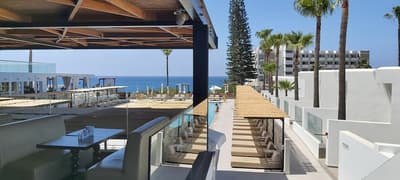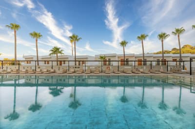 Vous avez vu ces petits bungalows au bord de la piscine ? On dirait presque un mini Wisteria Lane (le quartier dans Desperate Housewives, come on !), non ? Sauf qu’eux, ils sont roses, comme s’ils en avaient besoin pour qu’on les qualifie de « trop mignons » ! Et vous voulez savoir la meilleure ? Vous pouvez dormir dedans ! Oui, oui, vous ! Avec une petite terrasse pour regarder les autres passer, comme un trône VIP. On ne garantit pas des grasses mat’ absolues, le chahut commence sûrement très tôt. Mais vous savez quoi ? Vous, contrairement à tous les autres, dans les chambres (avec balcon et vue sur la Méditerranée, certes…), vous n’aurez qu’à ouvrir votre baie vitrée et faire deux pas pour taper votre meilleur plongeon. Ou votre meilleure bombe, pour vous venger de ceux qui discutaient trop fort de leur soirée de la veille alors qu’il n’est que 10 heures du mat’ ! Non mais on est où ?? Ensuite, libre à vous de vous poser sur un transat pour profiter de la musique chill d’un DJ tout l’après-midi, d’aller faire un tennis, d’aller vous détendre au spa ou d’aller vous dorer la pilule sur la plage. Les choix seraient presque trop nombreux, non ?
