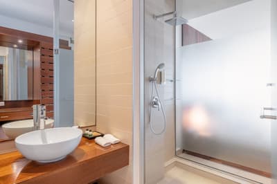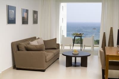 Elle a tout ce qu’il faut pour un séjour agréable et confortable. Balcon pour apprécier la vue sur la piscine ou partiellement sur la mer. Cette belle chambre accommode un grand lit double ou des lits jumeaux. Salle de bain chic.