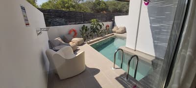 Elle a les pieds dans l’eau ! La terrasse est meublée de transats et profite d’un accès à la piscine. Agréable et confortable, elle a tout le nécessaire pour un séjour superbe. Cette belle chambre accommode un grand lit double ou des lits jumeaux. Salle de bain chic.