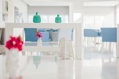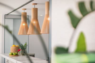 Dominée de blanc, elle est résolument design. Le mélange de bois, de verre et de métal rend l’ensemble exotique et élégant. Elle laisse pénétrer la lumière naturelle pour une pièce lumineuse. Des couleurs neutres rendent le cadre merveilleux.