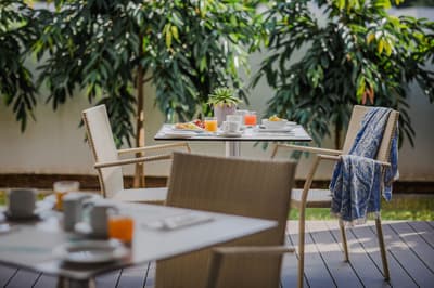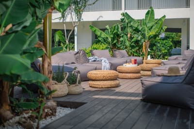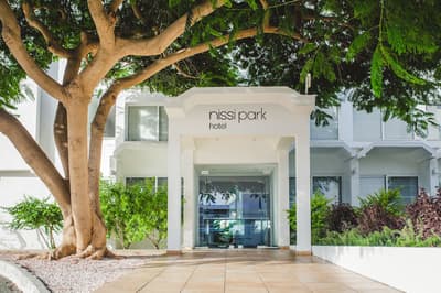 Pourquoi toujours en vouloir trop ? Le Nissi Park Hotel se contente du strict minimum et vous savez quoi ? Ça lui va très bien ! Les chambres ne font pas de chichi, ce n’est pas comme si vous comptiez passer huit heures par jour à l’intérieur de toute façon. De même pour la piscine, plutôt petite, mais ne vous inquiétez pas, il y aura quand même assez de transats pour tout le monde ! Alors pas besoin de vous lever à neuf heures du mat’ pour courir réserver : premièrement, vous passez pour une cruche, deuxièmement, ça ne sert à rien car l’hôtel n’a pas 300 chambres. A la rigueur, si ça arrive une fois que vous ne trouviez pas de place, la plage est vraiment, vraiment juste à côté hein ! Sur le chemin, profitez des bougainvilliers magnifiques nichés dans la cour intérieure trop mignonne. C'est à l’image de l’hôtel, intimiste et chic dans la simplicité absolue. « Il en faut peu pour être heureux », comme dirait l’autre. Un petit bonus pour la route : il s’agit du même groupe que le Nissi Beach Resort, qui vous accueillera donc à bras ouverts pour profiter de ses services sans aucun supplément de votre part.