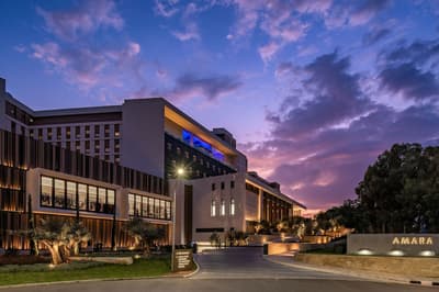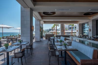 Vous allez pousser les portes d’un écrin de luxe niché sur une plage chypriote à l’Amara Sea Your Only View. Tout est dans le nom de l’hôtel ! La mer sera votre seul et unique point de mire ici ! Et ça se passe déjà dans votre chambre. On y savoure l’élégance du design et des matières, tout en bleu, gris et blanc, avec une salle de bain en marbre so chic... Mais c’est surtout sur la terrasse qu’on en prend plein les mirettes : à vous l’horizon sur la mer Egée ! En plus, certaines options bénéficient carrément de leur propre piscine privée. De quoi rester des heures dans votre habitation, à chiller et à profiter pleinement de vos vacances bien méritées. Mais n’attendez pas trop pour aller découvrir les lieux : les espaces extérieurs sont vraiment beaux, végétalisés et peuplés de bassins et de piscines, et toujours cette vue mer à tomber par terre... Prenez aussi le temps de savourer un bon café en terrasse, ou partez vous faire bronzer sur un transat sur la plage privée, avant de revenir pour vous faire masser et vous immerger dans le spa de l’hôtel. Ici vous attendent hammam, jacuzzi et piscine à l’eau de mer, unique à Chypre ! Du luxe encore du luxe ! Et ça continue dans les salles de restos raffinées. Vous avez le choix entre 4 sublimes tables, dont deux valorisent les spécialités locales avec un twist international. Les deux autres ? On peut y déguster une excellente cuisine Nikkei, qui mêle les saveurs du Japon à celle du Pérou, ou de bons petits plats italiens, pensés par un chef étoilé, SVP ! Une adresse vraiment très élégante et chic, qui manque peut-être un peu d’authenticité, mais qui offre une qualité de service irréprochable. Au top en amoureux !