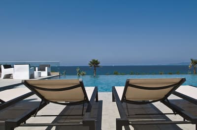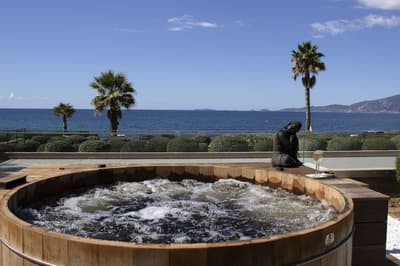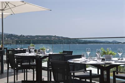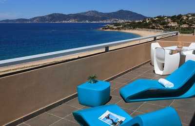 Pas les pieds dans l’eau mais en bord de plage, ce resort contemporain profite de sa proximité avec Porticcio et d’une vue imprenable sur la baie d’Ajaccio.