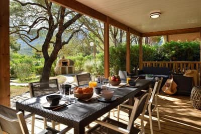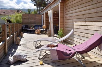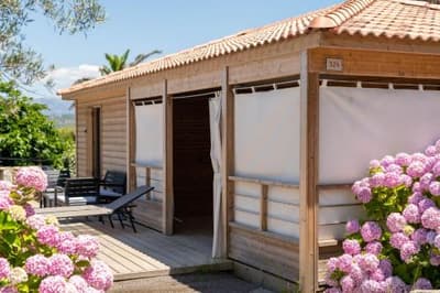 Le cadre est i-dyl-lique ! Mais où est-ce ? Dans le golfe de Valinco, à l'ouest de la Corse ! Au bord d'une mer tantôt turquoise, tantôt émeraude, la plage de sable fin de Portigliolo n'a rien à envier ni aux Bahamas, ni aux Seychelles ! Quant à la végétation généreuse qui tapisse les 6 hectares du domaine jusqu'en haut de la colline, et diffuse des parfums de maquis, elle sert d'écrins à de magnifiques chalets et bungalows en bois, accueillant respectivement jusqu'à 6 personnes, et des chambres pour 2, absolument charmantes. Les premiers appartiennent à la Résidence et les secondes à la partie hôtelière. Ce 3 étoiles assure, car le confort des différents hébergements est moderne et optimal. Tout a été extrêmement bien pensé. Ces terrasses aménagées où profiter des repas avec vue, ces cuisines équipées, ces grandes douches à l'italienne et cette literie affichant elle aussi de belles dimensions, vous garantissent des vacances dignes de ce nom ! On aime le resto ouvert aux quatre vents, quasi les pieds dans l'eau ! Y prendre son petit-déjeuner est un cadeau. On aime enfin la conscience environnementale d'U Livanti, qui a même breveté un système d'hydromaréthermie pour réduire radicalement son empreinte carbone. Voilà qui valait bien une certification !