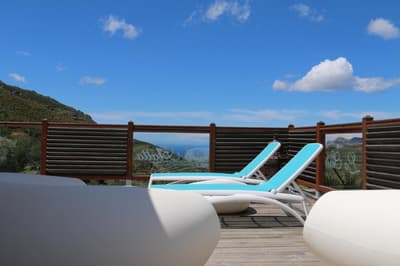 Nichée entre terre et ciel de Balagne, cette adresse 4 étoiles aussi intimiste qu’improbable vous offre le luxe d’une nature corse à perte de vue.