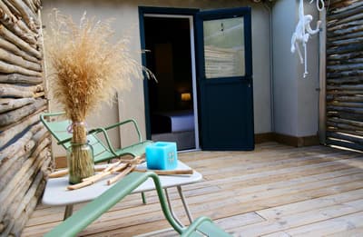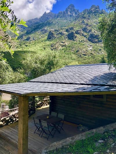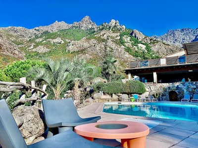 Le goût de la nature corse... En faisant escale à l’hôtel A Flatta, vous avez choisi de partir sur ses traces et pas n’importe où : dans un des plus beaux sites de Corse, la Balagne ! Après avoir un peu cahoté sur un long sentier de terre, à la sortie de Calenzana, votre effort est vite récompensé. Effet waouh garanti. Là, au cœur de la vallée, le minéral épouse le végétal, votre regard embrasse toute la montagne et, au loin, le golfe de Calvi dont le bleu scintille au soleil. Vous ouvrez grand vos yeux et… vos oreilles. En vain ! Pas un bruit, sauf celui de la nature, qui partout vous entoure. Comme le léger clapotis de la rivière en contrebas, le sifflement des oiseaux ou le bruissement des arbres. Vous vouliez être au calme ? Vous allez être servis ! Car votre adresse de charme, perchée sur ses fondations de pierre, est aussi intimiste qu’improbable, avec seulement 5 chambres et suites, toutes différentes et rénovées avec soin. À moins de flasher sur l’authentique bergerie, à l’écart, ou sur le chalet de bois. Et quitte à être en montagne… autant en profiter ! À vous les sentiers de rando qui vous mènent vers de véritables pépites comme Occi, un village abandonné en cours de restauration, les villages de Lumio ou de Sant’Antonino ou tout simplement Calenzana. Des moments hors du temps que vous prolongerez le soir, en terrasse, en dégustant un des savoureux plats du chef. Face à un panorama teinté d’or et de rose.