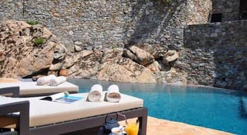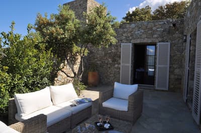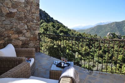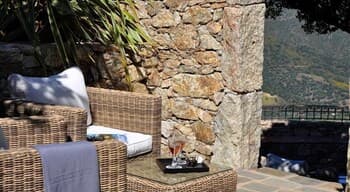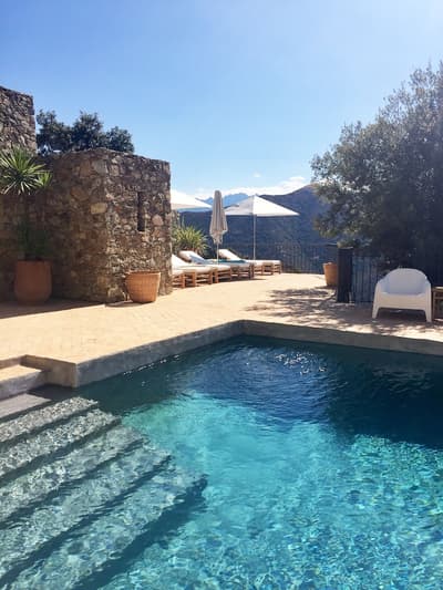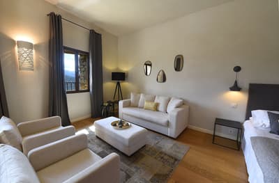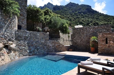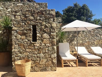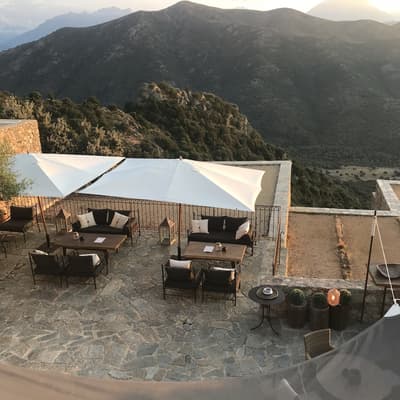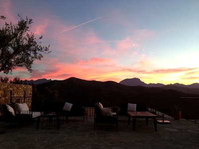 Vous vouliez un séjour bien typique ? Gagné ! Perché au-dessus de la cité médiévale de Lama aux portes de la Balagne, le Case Latine dégage toute la force poétique de la montagne corse. Conçu comme un petit village de seulement 9 suites, vous y grimperez des marches, arpenterez les dédales et passages empierrés pour rejoindre l’une ou l’autre des cinq maisons de pierre qui abrite la vôtre. Spacieuse, cosy et élégante, chaque suite ouvre sur une terrasse privative. De quoi ouvrir grand vos yeux : le panorama est fou ! Vous êtes sur le toit du monde ! L’hôtel domine toute la vallée qui coule jusqu’aux rivages, entre terre et ciel. Amateurs de balades ou de randonnées, vous n’avez que l’embarras du choix. Les plus avertis tenteront l’ascension vers le Monte Astu, plus haut sommet de la Serra di Tenda, qui culmine à 1 535 mètres ; les autres savoureront les essences du maquis sur les anciens chemins de transhumance, balisés de terrasses en culture, de pierres sèches, de paillers, de bergeries. Les fans de la Grande Bleue pourront toujours se rendre sur les plages des Agriates, à quelque 25 km. Mais le soir venu, posé sur la terrasse un verre à la main, vous ne manquerez pour rien au monde le sunset qui embrase la vallée.