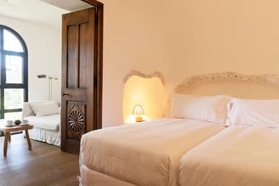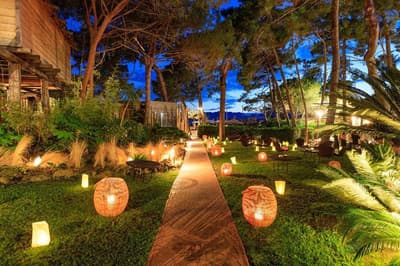 Escale au paradis programmée en séjournant dans le Grand Hôtel Cala Rossa, aux portes de Porto Vecchio ! Toute la Corse se dévoile avec subtilité dans cet hôtel bien pensé, au cœur d’une pinède et d’un jardin luxuriant de 7 000 m². Dès notre arrivée, c’est un festival pour les sens, entre cette vue incroyable sur la baie de Porto Vecchio, la plage à 80 mètres et les effluves enivrantes du maquis. A l’intérieur, on se sent tout de suite à l’aise, comme dans une grande maison de famille. Des meubles chinés, du bois local, des plantes de l’île, on retrouve logiquement ce caractère à la fois authentique, élégant et raffiné dans les chambres. Toutes offrent une vue sur le jardin ou la pinède. Et même la mer si vous avez un peu de chance ! Enfilez votre maillot de bain et allez vous poser sur la plage privée en traversant le jardin, ou filez directement au spa avec sa piscine intérieure, son sauna et son hammam. Là, vous pourrez programmer un bon massage, avec des cosmétiques bio propres à la maison, fabriquées à base de plantes corses. Mais c’est aussi sur les différentes terrasses de l’hôtel qu’on prend un plaisir immense à séjourner ici. Avec le resto La Pinède et ses bons petits plats méditerranéens, préparés avec des produits corses, et même les légumes du potager bio cultivé sur place. Mais aussi avec le resto italien sur la plage ou encore le bar à tapas… corses, of course ! Bookez une promenade en bateau, une séance de yoga en extérieur, et profitez à fond de ce petit paradis. Un paradis où, le soir, le jardin s’illumine de mille lanternes… Magique. Idéal en couple, mais convient aussi aux familles.