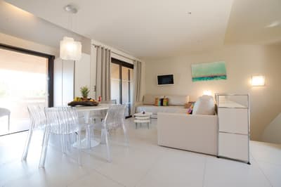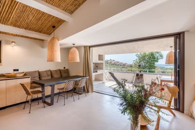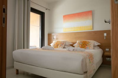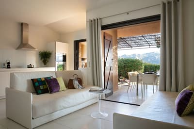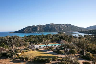 Vous aimez votre petit confort, une règle absolue, surtout en vacances. Bonne pioche ! La résidence hôtelière 4* Santa Giulia Palace vous promet une touche d’élégance et de modernité, une bonne dose de nature entre mer et maquis, et des jours tranquilles du côté de Porto-Vecchio. L'idéal pour se ressourcer, à l’abri de son parc arboré de 10 hectares, et s’en prendre plein les mirettes tant la vue est belle depuis la colline où elle s’est accrochée ! Entre les studios, les suites haut de gamme, les appartements et les maisonnettes, vous n’aurez que l’embarras du choix parmi les 60 unités proposées. Toutes logées dans des bâtisses d’un seul étage, aux façades blanches et aux toits de tuile. Vous êtes en rez-de-jardin ? Terrasse privée ! Vous êtes à l’étage ? Vaste balcon aménagé. Les intérieurs, entièrement rénovés pour la plupart dans un style contemporain, devraient satisfaire toutes vos envies : cuisine équipée, salon, salle de bain fonctionnelle, douche extérieure pour certains – un must – voire jacuzzi ! De quoi se sentir comme à la maison ! Et peut-être même en mieux… Car ce n’est pas une mais trois piscines qui vous attendent, avec bains à remous et transats posés sur les terrasses en bois, le tout cerné de pelouses verdoyantes et de végétation luxuriante. Vous craignez le voisinage ? La plage, à quelques minutes à pied, vous émerveillera : eau turquoise, sable blanc et rochers façon Seychelles. La Corse dans toute sa splendeur ! Et si votre curiosité vous titille, prenez le temps d’en découvrir quelques autres merveilles, comme la plage de Palombaggia, à quelques encâblures, ou la sublime cité de Bonifacio, à l’extrême sud.
