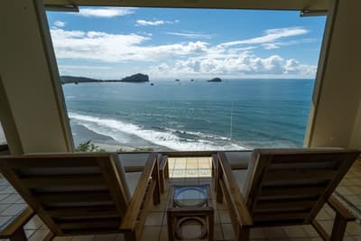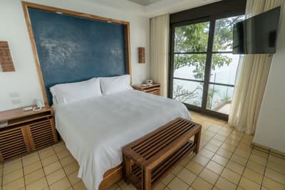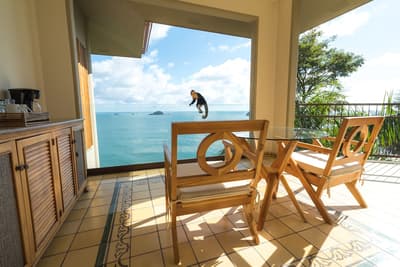 Pas facile de trouver un hôtel donnant directement sur deux plages, à proximité du parc naturel de Manuel Antonio ! C’est chose faite avec las Arenas del Mar. Entre jungle et mer, il ne s’est pas embêté à choisir : ce sera un hôtel, deux ambiances ! Et bien qu'il coche toutes les cases d'une adresse de choix pour les honeymooners, il se révèle vite aussi très familial. D'ailleurs, on aurait bien vu la famille d’Elisa Delajungle s'y installer. Certains clients ont même avoué qu’ils étaient restés dans l’hôtel plutôt que d’aller bagnauder dans le parc (pourtant juste à côté), tant la faune était exceptionnelle. On ne peut pas les blâmer : les rencontres avec les habitants à poils ou à plumes sont omniprésentes au sein même de l’établissement ! Et comme partout au Costa Rica, on joue à fond la carte de l’éco-responsabilité ici, même si l’aspect extérieur pourrait faire douter les plus aguerris. Côté nuit, les 37 chambres et suites de l’hôtel sont réparties dans sept bâtiments de trois étages, auxquels on accède à l’aide d’un buggy électrique. La propriété est donc vaste et peut dérouter au premier abord. Cette sensation s’efface dès qu’on pose les yeux sur le panorama. Alors, on oublie instantanément le reste du monde. Il n’y a plus que vous, l’Océan et la canopée bruissante de vie. Quand on sait que la plage de Las Playitas était un refuge naturiste, on ne peut que comprendre le projet. Qui n’aurait pas secrètement envie de passer son séjour dans un tel cadre, dans le plus simple appareil ? Presque dommage que l’hôtel soit si réputé, on y est rarement seuls...