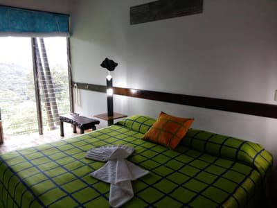 Si vous êtes à la recherche d’un hôtel authentique et écologique, vous êtes arrivés à bon port avec le Céleste Mountain Lodge ! Un Ecolodge qui se dresse face au volcan Tenorio au beau milieu d’une merveilleuse forêt primaire qui grouille d’animaux, de fleurs et de plantes endémiques. Ici, c’est la Wildlife qui vous attend… A vous les belles rencontres avec les singes, les oiseaux tropicaux et les grenouilles ! Passez la barrière, et vous êtes pris en charge le propriétaire des lieux. Joël, un Français tombé amoureux de ce petit paradis ! Tout a été réfléchi pour que la nature joue les premiers rôles : de la construction bioclimatique des bâtiments, à la terrasse ouverte sur ce panorama fou, où vous allez kiffer siroter un bon jus de fruit frais. Tout pour savourer la philosophie écologique de l’hôtel où on prône une certaine sobriété heureuse. Alors dans votre chambres de 27 m2, et donc plutôt spacieuse, ne vous étonnez pas de ne pas trouver de télévision, mais une déco plutôt minimaliste avec des meubles en bois local et une petite salle de bain. Tout se joue dans l’ambiance chaleureuse de ce Lodge original et dans la connexion avec la nature ! Nature que vous allez découvrir grâce à des excursions géniales proposées à l’accueil. De véritables aventures qui palpitent avant de vous offrir un bon massage sur demande, mais surtout un repas agréable avec de délicieux plats qui mêlent recettes traditionnelles et influences européennes. Ce lieu est une rencontre. N'oubliez vos chaussures de marche surtout ! Car pour profiter pleinement de cet écolodge, il faut partir marcher aux alentours et notamment sur le sentier privé de 2 km immergé dans la jungle. Que du bonheur.