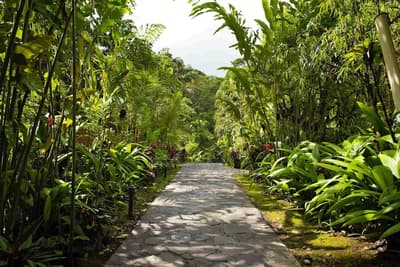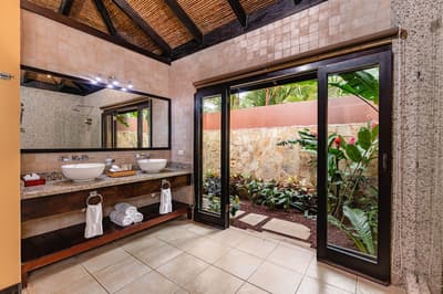 Elle dispose d'un patio privé avec une douche extérieure d’où vous pourrez prendre des bains relaxants, ainsi que d'une terrasse qui fait face à l'intérieur vers le parc de l'hôtel, offrant une vue imprenable sur le jardin.