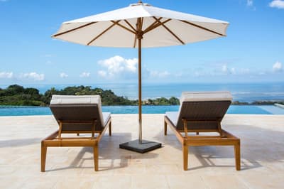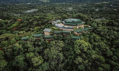 Pas besoin de faire de la tyrolienne pour voler au-dessus de la canopée! Au Three Sixty Hotel, vous pourrez flotter toute la journée : à 300 mètres d'altitude au-dessus de la baie d'Uvita sur la côte Pacifique, ce boutique-hôtel offre un panorama unique, à 360° sur l'océan et la forêt tropicale ! Spectaculaire avec ses rondeurs et son allure théâtrale, l'architecture a été entièrement conçue autour des vues, mais aussi du souci de limiter l'emprise au sol. Les 12 villas et les parties communes occupent moins de 10 % des 23 hectares du domaine. A vous donc le grand vert et le grand bleu ! Sur la terrasse de votre villa, avec vue à 200° ou partielle sur l'océan, vous mixerez les deux en observant toucans, aras rouges, singes ou iguanes. Au bord de l'infinity pool qui étire ses 30 mètres sur fond d'océan Pacifique et de canopée, vous pourrez siroter en prime un cocktail à base de fruits bio et de la marque de vodka maison, Three Sixty évidemment ! Envie de vert, encore ? Un petit sentier s'enfonce dans le domaine pour une mini balade sportive entre escaliers et ponts de bois, et une plate-forme pour le yoga, à 15 minutes de marche, attend les accros à la salutation au soleil ! Pour faire le plein de nature, les plus beaux parcs du Costa Rica sont à deux pas : le parc national Marino Ballena, pour le snorkeling et l'observation des baleines à bosse en saison est à 20 min de route. Et le parc national de Corcovado, le plus riche en matière de biodiversité, à 40 min de bateau. Vous n'avez pas fini de naviguer entre bleu et vert !
