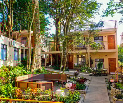 Imaginez une retraite écolo, en immersion au cœur de la jungle épaisse de Monteverde. Votre rêve peut devenir réalité en réservant un lodge de luxe au Sibu Boutique Hotel. Rénovée de manière durable, cet établissement propose des chambres toutes neuves réservées aux travelers en quête d'échappée au cœur de la biodiversité. Bref, un voyage 100 % green en chambre de luxe, avec un service vraiment personnalisé. La visite débute par le lobby verdoyant et se poursuit par son bar design, avec ses fauteuils en velours trop stylés. Ça pète de lumière et de cosiness, on a juste envie de rester chiller. Quoi que, l’appel de la jungle est si fort que vos pas vous mènent jusqu'au jardin tropical sous la canopée, puis sur le rooftop imaginé comme un petit parc avec table de pique-nique et bancs où bouquiner. Vous séjournez à deux pas de la destination écotouristique par excellence du Costa Rica. A peine le temps de prendre le petit déjeuner au restaurant de l'hôtel que vous voilà déjà sur les sentiers de la réserve, à observer les centaines d’espèces animales et végétales rares qui peuplent la jungle. Prêt à vivre votre aventure en pleine nature ?