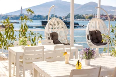 Vous avez envie de vous reposer une semaine en Croatie ? On vous a trouvé un lieu chill, avec de superbes suites, deux piscines et un accès à la mer : le Brown Beach House. Et une situation à deux pas d’un village pittoresque construit sur un îlot : Trogir. Le bâtiment rectangulaire de votre hôtel, autrefois une usine de tabac, se dresse sur fond de ciel bleu et de végétation éparpillée sur les collines arides, devant la mer Adriatique. Le verre de bienvenue et la décoration du lobby mettent tout de suite dans l’ambiance décontract’ ! Palmiers en pot, objets en porcelaine, colonnes parées de miroirs, bibliothèque design, piano en bois… C’est hyper tendance ! Même style pour les hébergements, ultra zen, certains avec des salons cosy, certains avec vue sur l’Adriatique, certains avec accès à un rooftop où vous attend un jacuzzi. Après un petit déj’ copieux, vous avez le choix entre explorer la région — Split, Brac… — ou prendre du bon temps à l’hôtel. L’immense bassin chauffé, vêtu de carreaux black & white, en infinity avec la mer, est incroyable ! Il y a aussi le spa et le Beach Club, et des jeux d’eau pour les enfants. Bon comme mauvais point (pour les plus sensibles au bruit) : le Brown Beach House se trouve à 5 km de l’aéroport.