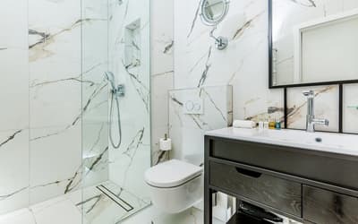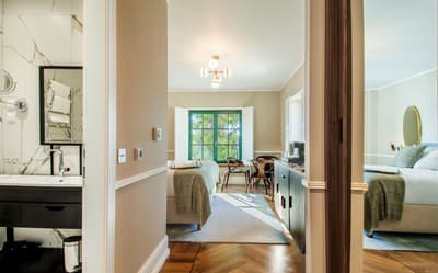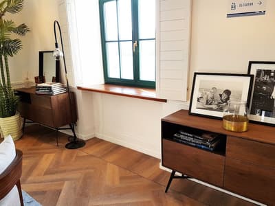 Confortable et élégante, elle comprend un mobilier design, un beau parquet, des accessoires tendances et se complète dans des tons doux. La chambre est dotée d’un lit king douillet et la salle de bains en marbre est équipée d’une douche à l'italienne. Le tout dans une atmosphère relaxante !