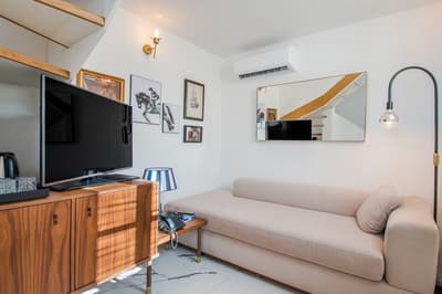 Dans une décoration élégante et épurée, elle comprend un mobilier design, des plantes intérieures et se complète dans des tons blancs. La chambre est dotée de deux lits simples dans deux chambres séparées dans la galerie et la salle de bains en marbre est équipée d’une douche à l'italienne. Le tout dans une atmosphère relaxante !