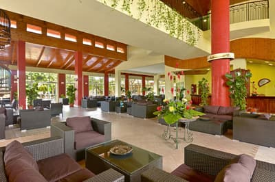 Un hôtel all inclusive pensé pour les familles, à proximité immédiate d’une plage de sable blanc bordée de palmiers et de cocotiers.