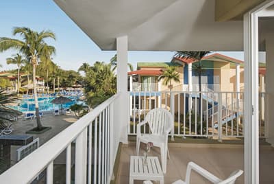 Balcon, Air conditionné, Lit King Size (2x2m) ou 2 lits individuels, Tv à écran plat 32', Coffre-fort, Mini frigo, Salle de bain avec baignoire, Sèche-cheveux, Fer à repasser/Table à repasser, Chambre sans plastique à usage unique, Vue sur la piscine.
