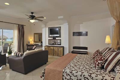 Cette suite intime et agréable, offre un séjour merveilleux avec les services d’un majordome. Elle dispose d’une terrasse aménagée d’une table à manger, idéale pour apprécier le climat. C’est le top avec sa douche balinaise et sa baignoire à remous. Coin salon en chambre avec un canapé confortable. Salle de bain chic avec baignoire et douche à effet de pluie.