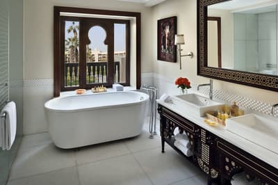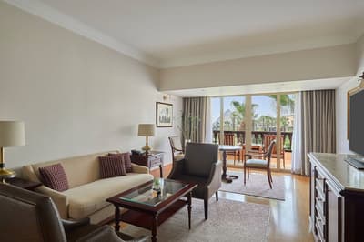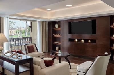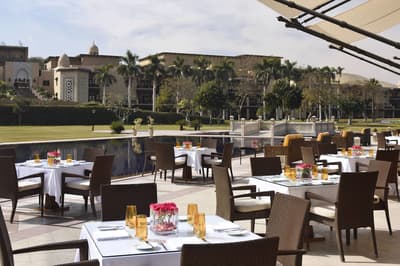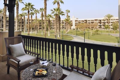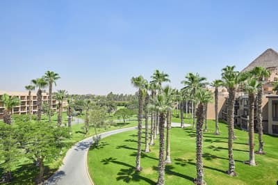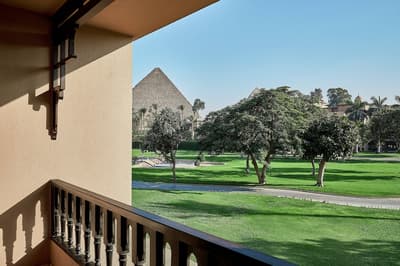 Vous rêviez d’être au bord du Nil ? Pas de chance, vous serez le nez dans le sable, face aux Pyramides ! Un pas de plus et vous atterrissiez dans le lit de Khéops ! Séjourner au Marriott Mena House, c’est traverser le passé. Ici, pas de point vue du 25ème étage, un classique au Caire : 3 suffiront pour en prendre plein les yeux devant l’une des sept merveilles du monde ! Les origines du bâtiment ? C’est l’ancien pavillon de chasse du Khédive Ismaïl Pacha. C’est qui celui-là ? Pour info, c’est le premier vice-roi d’une dynastie devenue héréditaire. En gros, un people du cru ! Depuis 1869, le Marriott Mena House n'a pas cessé de faire la une des journaux égyptiens. Têtes couronnées, politiques influents, VIP faisant la couv de Voici se sont bousculés dans la palmeraie grande comme 22 terrains de foot. Imaginez Winston Churchill fumant son Romeo y Julieta, Messi ou Ronaldinho tapant la baballe ou encore Angela Merkel en voyage officiel ! Malgré une tripotée de transformations dont la dernière date de 2017, et d’agrandissements en tout genre, le Marriott Mena House a su garder son âme. Il faut dire aussi que la déco et les intérieurs plaident coupables : antiquités, meubles artisanaux et œuvres d’art ont trouvé leur place dans la partie ancienne, véritable manifeste de l'art islamique. On croule sous les lustres de cristal et les dorures ! L’aile la plus récente fait honneur à la simplicité. La lumière y sublime tout...