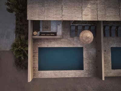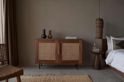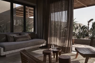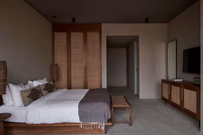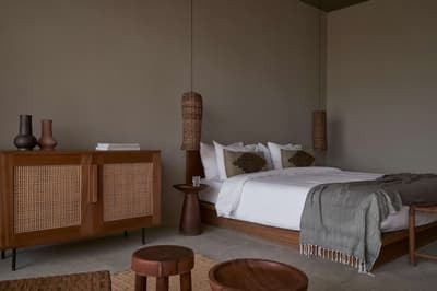 Dans une décoration épurée, elle arbore un mobilier en osier et en bois, des accessoires artisanaux et se complète dans des tons doux. La chambre est dotée d’un lit king size confortable et d'un canapé et la salle de bains en béton ciré est équipée d’une douche intérieure et extérieure. Le tout dans une ambiance relaxante !