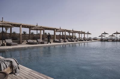 Véritable refuge luxueux et écologique posé au bord de la mer Rouge, l’hôtel Casa Cook el Gouna relève du fantasme égyptien. Vous voilà au milieu d’un univers de sable contrasté de bleu azur profond, qui abrite des récifs coralliens parmi les plus recherchés de la planète. Du glamour se dévoile sous vos pas dès l’arrivée dans ce temple de l’écosensibilité et du durable. Des matières naturelles orchestrent les bâtiments : du bois brut au rotin, l’hôtel vous plonge dans une bulle de sérénité instantanée. Au-delà de la plage privée et de ses spots de snorkeling tout proches, vous vous ancrez d’abord dans votre chambre, aux teintes terreuses harmonieuses. Du chic, du luxe, de l’espace, oui, mais de l’expérience surtout, avec une vue sur les montagnes, les jardins ou la mer. On vibre haut, on vibre fort dès le départ, que ce soit au bord de cette piscine rectangulaire splendide ou dans l’espace shala, parfait pour vous prêter à quelques asanas durant votre yoga du matin ou du soir. Un refuge Adults only qui plus est, pour vous garantir le ressourcement recherché. Presque inégalable avec ce spritz au vin égyptien, à siroter sur la terrasse près de la piscine, avant de passer à table et de déguster des plats à partager aux accents orientaux irrésistibles. Vraiment du haut niveau en matière de confort et de rechargement physique et mental dans cet univers durable et paisible. Avec quelques sets DJ tout doux pour vous envelopper dans une forme de paradis égyptien version mer Rouge chill.