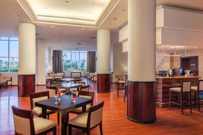 Spacieuse, cette jolie suite profite d’un balcon aéré donnant sur une vue imprenable sur la mer rouge et la piscine. Elle dispose d’une grande entrée et d’un salon avec sièges luxueux pour vous détendre, après vos activités shopping et excursion. À noter qu’elle comprend une salle à manger pour les grandes réunions en famille et entre amis ainsi que des équipements de luxe.