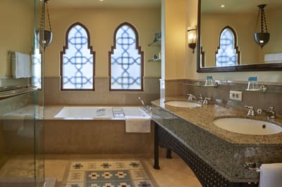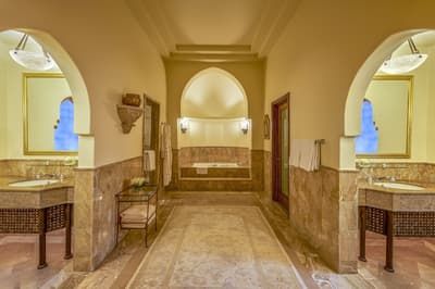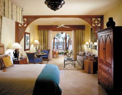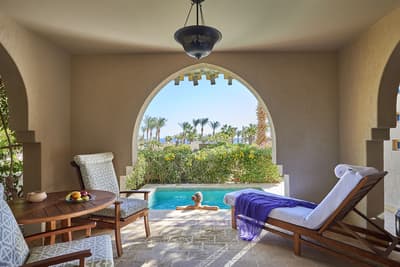 Si le paradis sur terre existe, c’est sûrement au Four Seasons Sharm El-Sheikh qu’il se trouve. Le cadre est tout simplement magique ! Construit sur une colline en pente douce surplombant le golfe d’Aqaba sur la mer Rouge, bordé par un récif de corail -idéal pour le snorkeling-, l’hôtel jouit d’une vue époustouflante sur l’île aride de Tiran dont la teinte rose au coucher de soleil va vous décoller la rétine. Mais le plus extraordinaire se trouve entre ses quatre murs. Façon de parler car ici l’architecture a été complètement déstructurée pour un hôtel de cette capacité. Une maison, deux maisons, trois maisons… Vous n’allez pas compter les moutons mais bien le nombre d’habitations. Exit le bloc unique titanesque abritant une multitude de chambres, l’hôtel est constitué d’une myriade de petites constructions couleur sable disséminées aux quatre coins d’un immense domaine -10 hectares soit 14 terrains de foot- où l’entretien des espaces verts a été érigé en Art de vivre. Car l’une des merveilles du Four Seasons Sharm El-Sheikh est très certainement sa végétation -hibiscus, bougainvilliers, palmiers-, à laquelle on ne s’attend pas si près du désert… Ce petit village de style arabe multiplie les codes du genre : tours, arabesques, moucharabiehs… Une villa entière de 125 m², ça vous dit ? Le Four Seasons Sharm El-Sheikh est aussi LE paradis des enfants avec pléthore d'animations où ils vont pouvoir s'éclater.