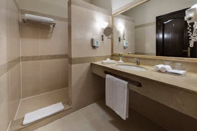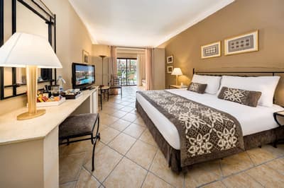 Plouf, plouf ! S'il n'y avait que deux qualificatifs à choisir pour ce resort, ce serait sans nul doute simplicité et luxe. Construit comme un petit village autour des piscines, tout aspire à la relaxation. La déco générale est délibérément sobre et épurée. Les architectes ont choisi un style Arabo-Andalous, prenant le meilleur de cet art - notamment les arcs voûtés qui sont pléthore dans le complexe - pour créer une atmosphère qui cumule beauté et sérénité. Architecturalement, rien ne vient perturber votre œil. Pas d’objets de décoration cheap pour faire « authentique ». Côté couleur, la même douceur harmonieuse habille les chambres. Une promesse de repos du guerrier des plus réparateurs. Les restaurants ont opté pour ce charme méditerranéen. Dans les bars, c’est l’éclate totale - open-bar ;-) - en terme de couleurs. Des associations osées et décalées procurent une ultra modernité et un glamour fou à ces espaces conviviaux. Des activités pour toutes les tranches d’âge viennent fignoler ce tableau idéal. Votre trip, c'est plutôt sieste sous le soleil bien calé sur une bouée géante ? Ou siroter un cocktail mortel avec votre âme sœur ? Vous êtes au bon endroit ! Le farniente - élevé au rang d’art - fait aussi parti du programme... What else ?