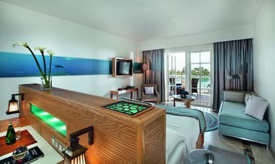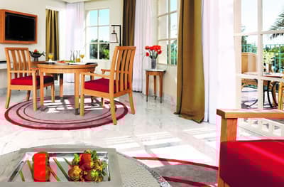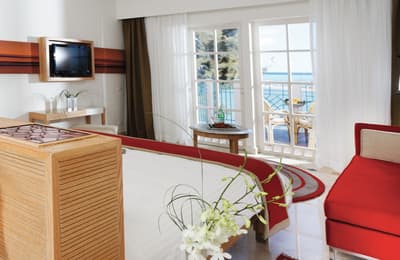 Être seul au monde, ou presque, vous en avez rêvé ? Mövenpick Resort & Spa El Gouna l’a fait ! Implanté sur une île, carrément !, les seuls voisins de ce resort sont les multiples poissons des magnifiques lagons qui l’entourent. Un vrai cliché de carte postale. Le complexe est bordé par des kilomètres de sable. À vous les pâtés de sables ou les parties de Beach volley. Sur un immense domaine, vous allez entretenir votre cardio, l’agencement entre les bâtiments, les piscines et les jardins se révèle topissime. À cours de cocktail durant votre séance de bronzette ? Pas de soucis, même si les plages sont éloignées des bars des piscines, le staff est toujours à l’affût pour vous remplir votre verre ou vous apporter ce que vous désirez. Mais ce resort révèle d’autres bonnes surprises. Avec ses petites maisons couleur ocre rose, il ressemble comme deux gouttes à un petit village du Sud de la France. Le centre ville d’El Gouna - et sa marina - est d’ailleurs surnommé le petit Saint-Tropez. L’ambiance intérieure est axée sur les beaux matériaux. Marbre et bois sont ponctués de touches colorées très sobres. Pas de chichi. Du fonctionnel. Simplement beau à apprécier. Ici, pas de bracelet cheap façon les Bronzés. L'élégance et la discrétion sont de mise. Vous avez opté pour le all-inclusive ? À chaque conso, vous signerez une note à 0€ - le kif ! - hormis le hors forfait.