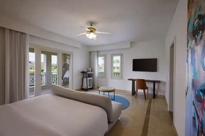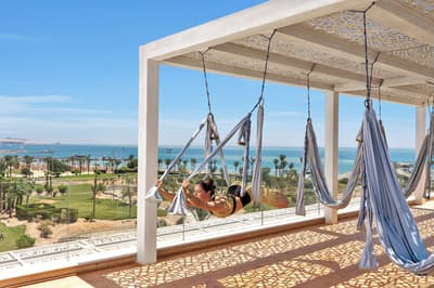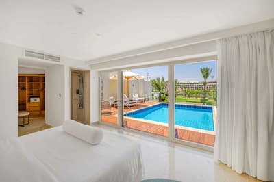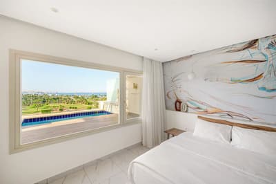 Voyage de noce prévu prochainement ? Anniversaire de mariage ? Enterrement de vie de jeune fille ou de jeune homme ? Ou besoin de se ressourcer tout simplement ? La journée, calme et romantisme sont au menu de ce resort. Un programme certes un peu pépère mais tellement kiffant pour déconnecter et recharger ses batteries… La nuit, pas de couvre-feu, on se déchaîne sur le dance floor ! La musique et les rythmes branchés se font plus entraînants, moins lounge. Dans ce resort ancré au bord de la mer Rouge, pas de bambins qui braillent toute la journée, qui vous éclaboussent au bord de la piscine -et anéantissent votre brushing en moins de temps qu’il ne faut pour le dire- ou collent leurs crottes de nez sur le bord du buffet. Steigenberger Pure Lifestyle d’Hurghada est exclusivement réservé aux adultes. Les grands enfants vont pouvoir s’éclater sur leurs bouées flamant rose ou licorne dans l’immense piscine centrale du resort. Le reste n'est que pure merveille... Dans une architecture très contemporaine -dotée d'une délicate touche bohème-, le blanc se fait couleur. Les matériaux ont été sélectionnés pour leur naturalité et leur durabilité. Ici, aucune chambre -et qui plus est familiale- mais des suites. Rien que ça ! Jacuzzi, swim-up, penthouse… Toutes présentent des options de folie qui vont rendre votre choix plus que cornélien.