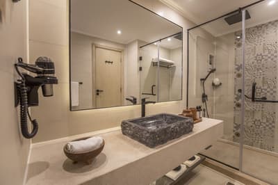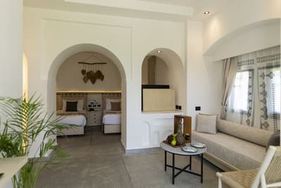 La suite junior comprend une terrasse avec des fauteuils confortables et une table pour vous prélasser au soleil, tout en contemplant la vue imprenable sur le jardin. À noter que des chambres connectées peuvent être disponibles. Après une bonne après-midi de baignade, vous pourrez vous détendre dans le salon spacieux, tout en dégustant votre apéritif.