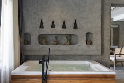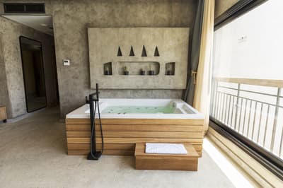 Elle profite d’un jacuzzi privé extérieur au milieu de vastes greens et une terrasse privée pour des moments de détente et de luxuriantes sérénité. Vous pourrez prendre vos repas sur la table à manger extérieure, tout en profitant du grand air. À noter que vous bénéficiez d’une entrée et privilège du Posh Club.