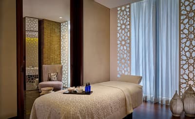 Lumineuse, elle profite de grandes baies vitrées, d'où vous pourrez contempler la vue imprenable sur le golfe Persique ou sur le palais. Elle dispose d’un balcon privé et de fenêtres allant du sol au plafond. Et à noter que des chambres communicantes sont disponibles. Durant votre séjour, vous beneficierez d'équipements modernes.