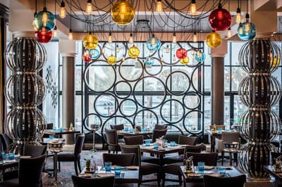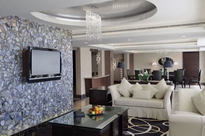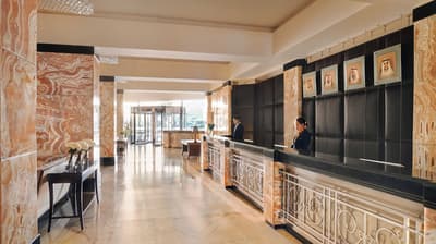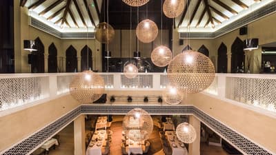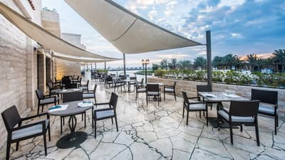 Si le bâtiment de taille modeste et de couleur sable passe plutôt inaperçu, il fait la différence une fois à l'intérieur. Attendez-vous à une avalanche de marbres, d'onyx, de bois précieux et de luminaires extravagants ! Rien de kitsch, rassurez-vous, le tout respectant un parti pris décoratif contemporain qui puisse seoir à la fois une clientèle business et une clientèle de loisirs. Les ambiances les plus réussies sont celles des restaurants Byblos sur Mer, Cho Gao Marina Walk et Belgian Café. Le premier se présente sur deux niveaux, avec l'Upper Lounge pour terminer la soirée. Tout en transparence, avec un mobilier design en résine tressée, des lampes néo-orientales, la terrasse de ce bar ultra chic fait face au coucher de soleil. Côté salle, une galerie flanquée d'une rampe façon mousharabieh, plonge sur de très jolies tables. Ce resto est en effet un vrai puits de lumière. Le second vous transportera en Asie. Avec ses lampions, ses cages, ses paniers, ses paravents japonisant, on s'y croirait ! Quant à ce café belge, avec sa devanture et son mobilier tout bois, son comptoir rustique et ses globes lumineux old style, l'illusion est tout aussi parfaite ! Et pour éliminer les frites, cap sur la piscine ou la salle de fitness panoramique !