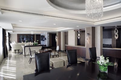 Confortable et cosy, la suite royale dispose d’un bel aménagement et bénéficie d’une vue imprenable sur la mer. Elle comprend un aménagement confortable et pratique et durant votre séjour, vous profiterez d'équipements modernes. À noter qu’elle profite d’une grande table à manger pour recevoir vos invités ainsi qu'un grand salon.