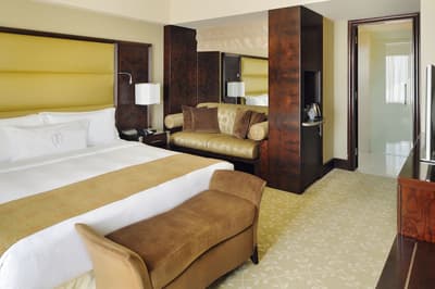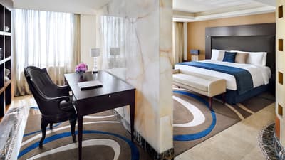 Un hôtel 5 étoiles, business et loisirs, qui a sa plage privée et des restos prisés.