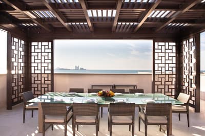 Bienvenue dans le royaume de Jumeirah ! Posons les bases : vous voici au sein d’un hôtel Jumeirah, installé au cœur d’un quartier Jumeirah, donnant sur le mythique Burj Al Arab, appartenant à… Jumeirah, en plein dans le mille ! L’inception est totale. Bien que créé de toutes pièces, le quartier est l’un des rares à miser autant sur ses influences orientales. On se retrouve donc immergé dans un univers arabique luxueux, posé en bord de mer. Si l’architecture bétonnée de l’hôtel, percée de larges fenêtres et pensée en demi-cercle, ne paie pas de mine, vous apprécierez sans nul doute le confort moderne et haut de gamme qui s’immisce dans ses moindres recoins ! Un resort contemporain, classe… mais surtout gourmand : là où s’illustre vraiment le Jumeirah Al-Naseem, c’est dans son identité gastronomie de haute volée, mélangeant les inspirations du monde entier pour un feu d'artifice de sensations culinaires. Et si on vient ici pour s’offrir un city-break 5*, on peut aussi y séjourner pour un joli séjour familial (bon, il faut par contre mettre le prix). Vous trouverez entre autres un Kids Club et vous bénéficierez d’entrées gratuites pour le Wild Wadi Park, l’un des meilleurs parcs d’attractions aquatiques de la ville !