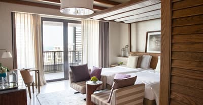 Cette chambre de luxe offre une vue sereine sur le golfe que vous pourrez contempler de la terrasse privée, tout en sirotant votre boisson préférée. Elle dispose d’un aménagement cosy et pratique et bénéficie d’une luminosité naturelle qui imprègne toute la pièce. Durant votre séjour, vous bénéficierez des meilleurs services et équipements.