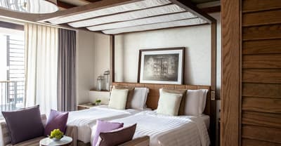 Dans un style de décoration moderne, elle comporte un beau carrelage, un mobilier confortable et se complète par une palette de couleurs des dunes de sable de la région et par le riche patrimoine de Dubaï. La chambre est dotée d’un lit king-size ou deux lits jumeaux (sous réserve de disponibilité), ainsi que des lits d'enfant qui peuvent être disponibles sur demande. La grande salle de bains ouverte comporte des commodités luxueuses. le tout dans une ambiance tropicale !