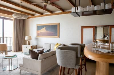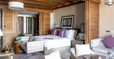 Dans un style de décoration moderne, elle comporte un beau carrelage, un mobilier confortable et se complète par une palette de couleurs des dunes de sable de la région et par le riche patrimoine de Dubaï. La chambre est dotée d’un lit king-size et des lits d'enfant peuvent être ajoutés sur demande. La grande salle de bains ouverte comporte des commodités luxueuses. le tout dans une ambiance tropicale !