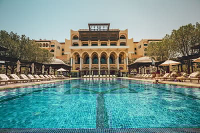 Situé à mi-chemin de l'aéroport et du centre ville, un hôtel de luxe avec une plage privée d'1 km, des canaux navigables pour le côté charme et une vue privilégiée sur la Grande Mosquée