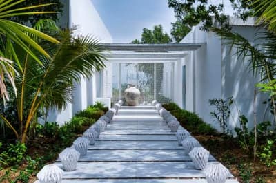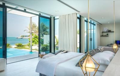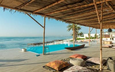 En arrivant sur l'île, à droite du ponton, quatre lettres vous accueillent : LOVE. C'est vrai que le lieu s'y prête. Ces Beach Villas en feraient rêver plus d'un, pour y passer leur lune de miel. Même si on n'est pas sur le cliché d'une île paradisiaque genre Maldives, les concepteurs l'ont néanmoins imaginé comme ça. La végétation tropicale que vous découvrirez en chevauchant votre vélo pour aller de votre tannière jusqu'à la plage de Pineapple, est typique de ce qu'on trouve dans ces contrées de l'océan Indien. Les restaurants sont aussi dispersés aux quatre coins de l'île, proposant autant d'espaces et d'ambiances différentes. C'est le cas aussi pour le Nuraï Spa, avec ses cabines de soins qui dominent les eaux du golfe. Cubiques, toutes blanches, ultra zen, elles sont à l'image du resort. Mais pas que ! Car celui-ci est aussi voué aux loisirs. Nul doute que le Smoking Pineapple sera votre QG ! Ce resto-bar-club de plage est le spot to be, situé face au lagon... effleuré par quelques hamacs ! Sous le auvent de palapa, sont suspendus des sièges de balançoire. Au sol, des poufs et des coussins ethniques vous inviteront à la sieste. En soirée, la fête bat son plein...