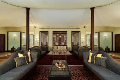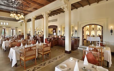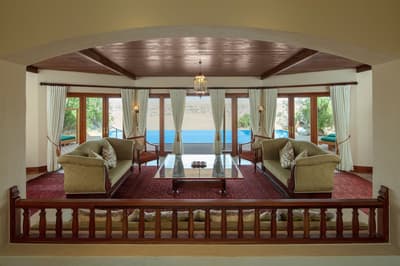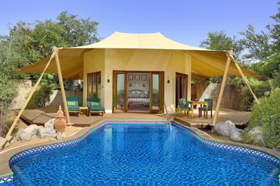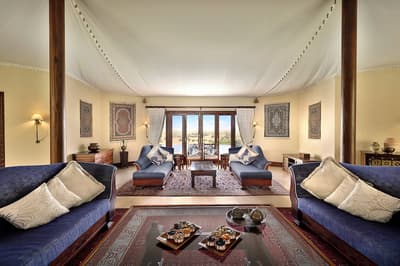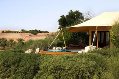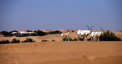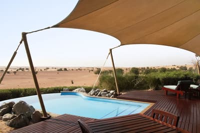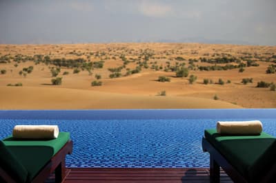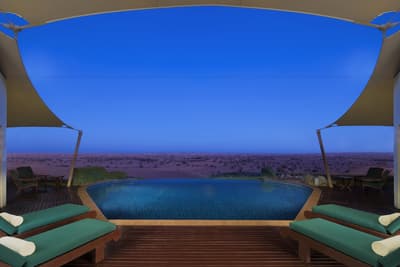 Certes, vous avez déjà sans doute vu un paysage de dunes ! Mais y évoluer durant plusieurs jours est bien autre chose... Bienvenue sur la planète Mars ! Le sable ocre rouge, les palmiers et les acacias seront votre lot quotidien, une ensemble que vous apprécierez depuis votre plunge pool ou piscine panoramique, depuis les terrasses du bar et du restaurans ou encore depuis les transats du Timeless Spa. Celui-ci est en quelque sorte le saint des saints. Ses portes en bois sculpté, flanquées de jarres monumentales, donne à l'entrée quelque chose de solennel. Les fontaines parlent de fraîcheur, les tissus de préciosité et les lampes ajourées d'un Orient raffiné. Le moment qui vous fera le plus tripper, ce sera celui où vous irez dîner à la lueur des flambeaux, au sommet d'une dune. Une table recouverte d'une couverture ethnique rouge, posée sur un tapis immense, et entourée de coussins où vous pourrez vous asseoir, vous y attendra. Ce sera l'occasion de vous remémorer les safaris du jour, sur les pas des gazelles et oryx d'Arabie. Les troupeaux sont tellement impressionnants ! La piscine principale, paysagée, les attire aussi à la nuit tombée...