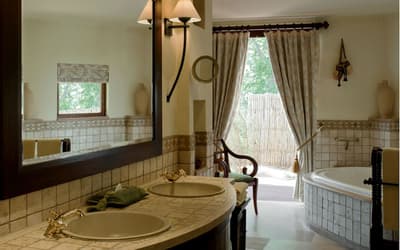 C’est un véritable havre de paix ! L’espace est merveilleux et harmonieux. Elle laisse pénétrer la lumière naturelle pour une pièce lumineuse et accueillante. Le mélange de bois, de métal et de verre rend l’ensemble élégant et exotique. Quelques touches de couleurs y ajoutent du peps.