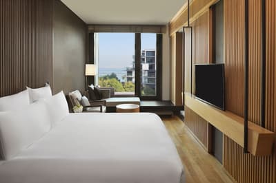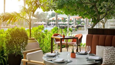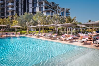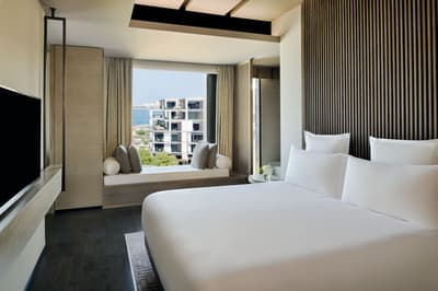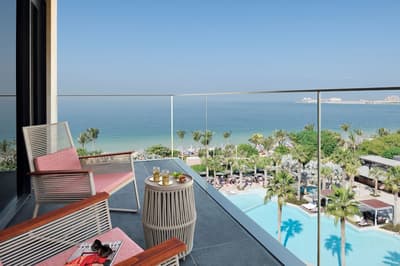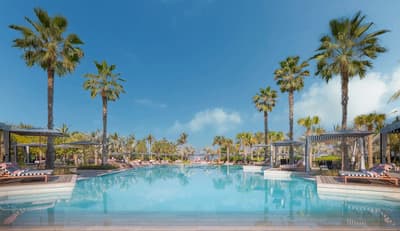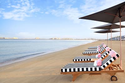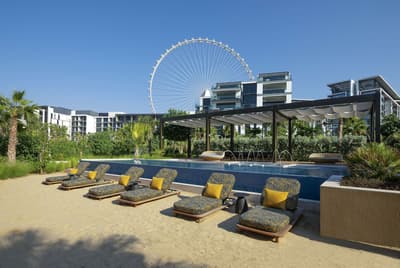 Le Caesars Resort Bluewaters est carrément dingue ! C'est la démesure : 500 chambres, 13 restaurants et bars, 5 piscines et 500 mètres de plage privée ! Vous connaissez vous, un hôtel avec un... planétarium tropical ? Avec genre plus de 3.000 plantes et animaux ? Maintenant oui ! Il ne manque plus que les licornes pour rendre le bail encore plus surréaliste ! Puisque le resort est immense, n'imaginez surtout pas que vous allez vous déplacer à pinces ! Ici, on siffle poliment les chauffeurs des navettes qui patrouillent en permanence. Vous ferez du running plutôt sur le tapis de course du fitness ! N'allez pas non plus confondre démesure et manque d'intimité ! C’est loin d’être l’usine ! Vous aurez l'impression d'être seul au monde, et pas uniquement dans le secret du spa. Et puisqu'on parle du spa, vous allez tester un truc vraiment terrible : le Psammo Concept Quartz Bed. Quitte à vivre les pieds dans le sable toute la journée, vous pouvez pousser le vice encore un peu, non ? Imaginez ! Vous êtes sur un lit de sable chaud qui ondule inlassablement en vous massant le dos. Les parfums d'huiles essentielles s'en mêlent. Vous décrochez illico ! Depuis le resort, les perspectives se multiplient sur la mer mais aussi sur l’Ain Dubaï, cette roue haute de 210 mètres érigée juste derrière l’hôtel, en passe de devenir l’un des highlights de Dubaï. "Ce rêve bleu...", vous l'entendez ?