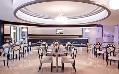 On va y aller direct' : le gros atout du JA Ocean View Hotel, c'est sa plage, en accès direct depuis la piscine à débordement ! Mais l'espace piscine est lui-même plus qu'agréable puisque son sundeck court sur 1200 mètres carrés... Ici, à vous la belle vie entre votre transat et des longueurs mer & bassin. Vos éventuels enfants, eux, ont leur propre piscine. D'ailleurs, ils vous abandonneront sans doute pour rejoindre leurs copains au Kids Club ou au Teens Club la plupart du temps ! Sinon, l'hôtel est un gratte-ciel sur fond d'autres gratte-ciels, Dubaï oblige. L'intérieur se veut tout aussi moderne, avec des tentatives design au niveau du lobby, où un grand escalier semble se soulever dans les airs jusqu'à la galerie supérieure, illuminé par une pluie de globes suspendus. Le soubassement traité en nid d'abeille est juste superbe. On retrouve ce design au sein du Calm Spa, en particulier dans la scénographie du jacuzzi. Ce bleu nuit éclairé par des centaines de LED vous plongera dans une magie sans pareille, avec la musique des bulles pour vous amener à lâcher prise totalement. Cela avant d'aller avaler une pizza ou trinquer avec vos friends au comptoir de l'Offside, le QG des amateurs de sports et de fête !