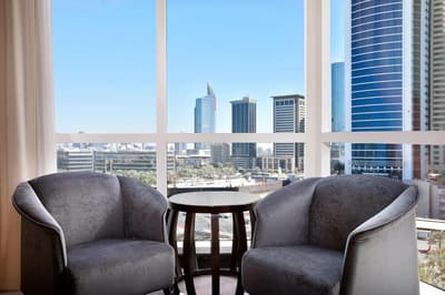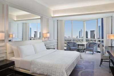 La grande baie vitrée profite d’une vue superbe sur la ville. La catégorie club offre des avantages durant le séjour. Très agréable, elle accommode un grand lit king. Salle de bain chic.